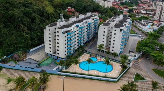 Lindo e Confortável Apartamento de Frente ao Mar em Caraguatatuba, Litoral norte de SP, local de praias maravilhosas. Apartamento com 68m2, com 2 dormitórios, 2 banheiros, sala para 2 ambientes (jantar e estar), cozinha completa, área de serviço, 1 garagem coberta, acomoda muito bem até 8 pessoas, lazer completo, Mini quadra poliesportiva, bicicletário, sauna, piscina, churrasqueira na cobertura, sala de reunião com WI-FI. Condominio familiar, é proibido o uso de drogas.