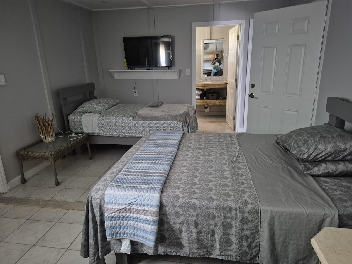 這是新翻修的現代單臥室公寓,位於巴哈馬寧靜的聖薩爾瓦多島上。 這間寬敞的公寓非常安全,非常適合放鬆、度假、長期住宿或商務差旅。 配備了享受住宿所需的所有設備與服務。 從在我們的木製四座椅上品嚐巴哈馬美食,到熱水淋浴或在我們的按摩浴缸中放鬆身心。 此公寓距離海灘、雜貨店、酒吧/餐廳僅幾分鐘路程。