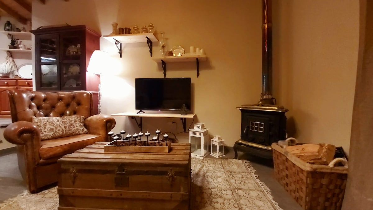 房子有開放式休息室和廚房、2間臥室-一間在一樓有雙人床,另一間在上樓有2張單人床,和1間浴室。 臥室有暖氣,客廳有空調。 客廳配有壁爐。 通往第二間臥室的樓梯是 Santos Dumont 樓梯:斜坡,每個台階都向後傾斜,不會用於上樓。 我們提供的服務包括早餐,這是可選的(每人每天8歐元)。