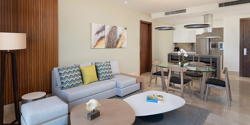 Two-Room Suite Enjoy the perfect combination of space, comfort, and privacy with our exclusive Suite at Península Esmeralda. This includes: A King Room with Ocean View, featuring a spacious king-size bed, elegant finishes, and stunning views of the turquoise sea. A queen room, ideal for additional family members or friends. Together, these rooms offer the ideal setup for families and groups seeking a balance of luxury and functionality.