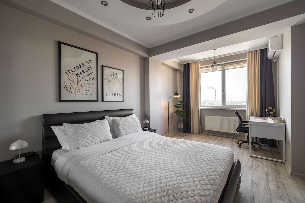 公寓位於基希訥烏最負盛名、最安全的地區。 寧靜的氛圍、時尚時尚的設計、公寓的寬敞和便利,讓您放鬆身心,度過美好的時光。 體貼、高科技、房源布局的獨特性將為您帶來愉快舒適的住宿體驗。 房間內有人工窗戶,可模仿自然光。 空氣回收。漂亮的院子區域,室外用餐區可免費使用。