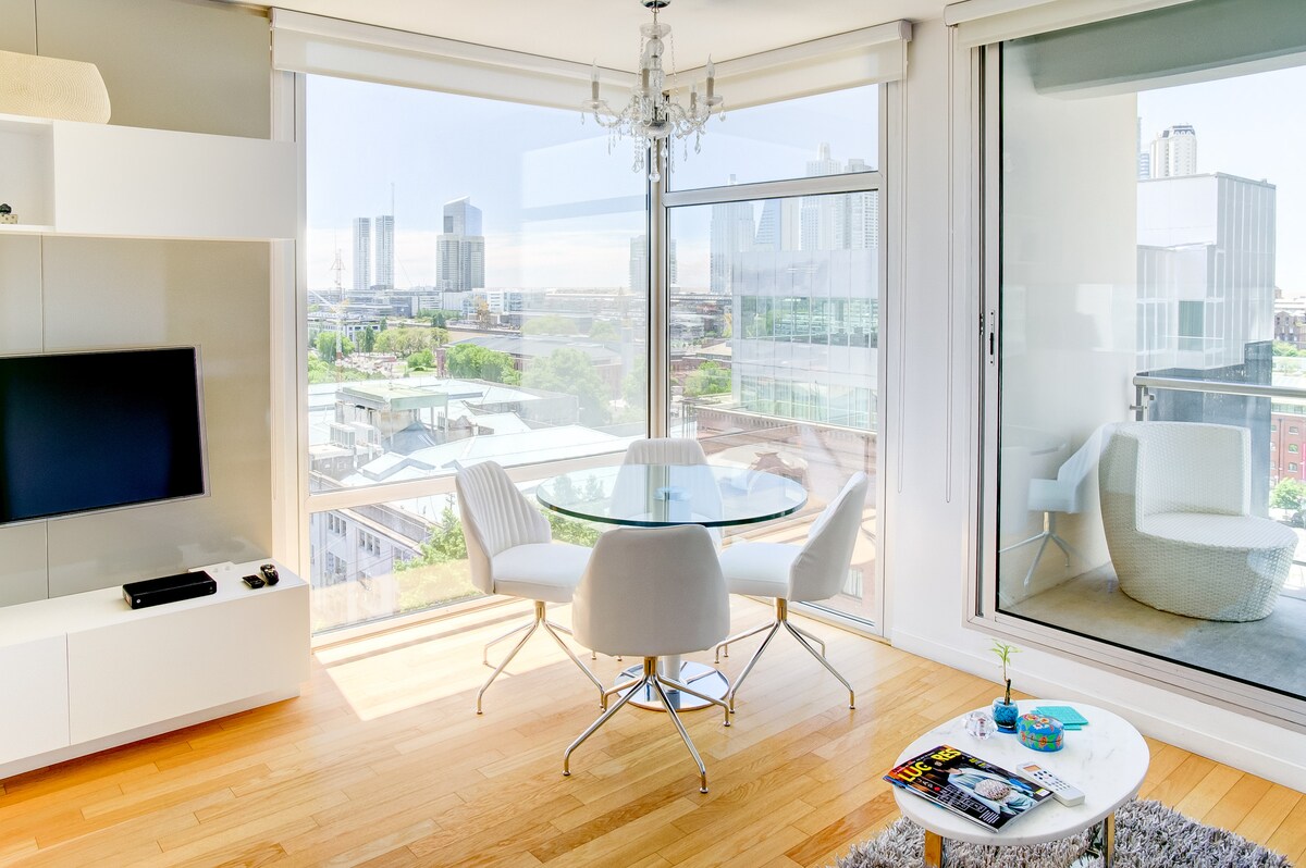 時尚、陽光明媚且設備齊全的公寓。24小時保安。 非常適合2位獨立房客,最多可容納4位房客。 輕鬆入住和退房。 前面有陽臺。 每個房間都有空調。 地暖。電視、有線電視和高速WiFi。 在布宜諾斯艾利斯感受賓至如歸的住宿體驗。 靠近城裡最酷的餐廳。 附近有體育選擇。非常適合度假或工作住宿。 大樓有多個使用房間( SUM )、洗衣和遊泳池