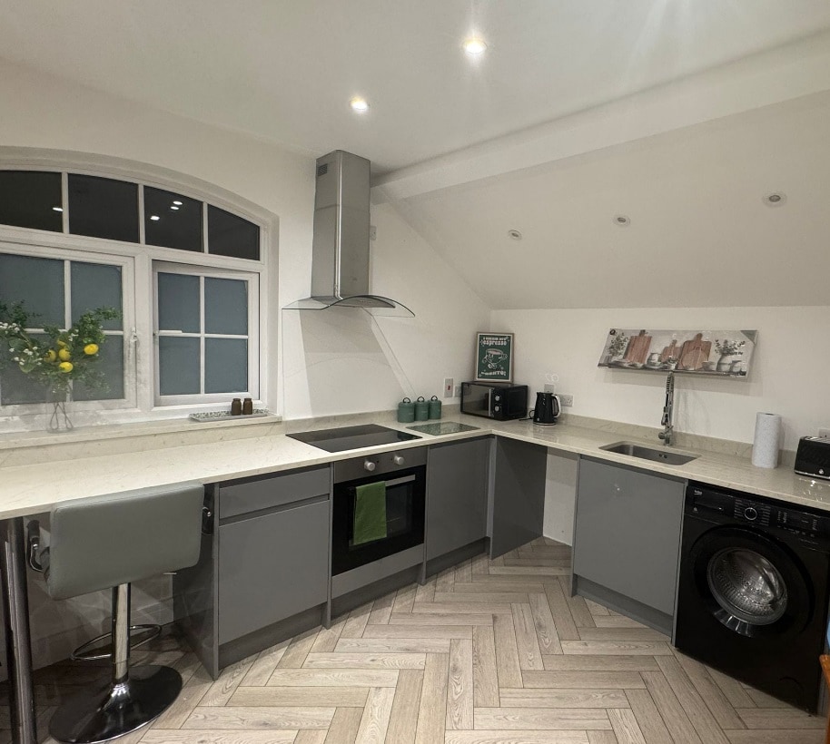 Discover your stylish home in central Reading! This brand-new one-bedroom apartment is perfect for couples, families, or business travelers. Features an open-plan living area with a sofa bed, a fully equipped kitchen, and a flexible king or twin bedroom setup. Located just a stroll from The Oracle Shopping Centre, it's the ideal base for exploring the city. Comfortably accommodates up to 4 guests.