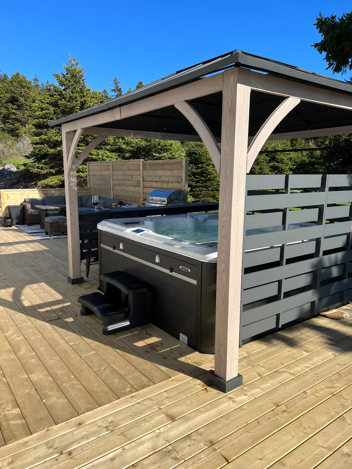 Escape to a private retreat in South River mins from historic Brigus. Nestled on a large private lot surrounded by towering trees, this luxury 2 person getaway offers the perfect mix of nature, privacy, and relaxation. After exploring the Avalon Peninsula from this central location unwind in the private outdoor hot tub. A 6-minute stroll brings you to The famous Newfoundland Distillery Company, for handcrafted spirits, delicious snacks and a sprawling view of Conception Bay.