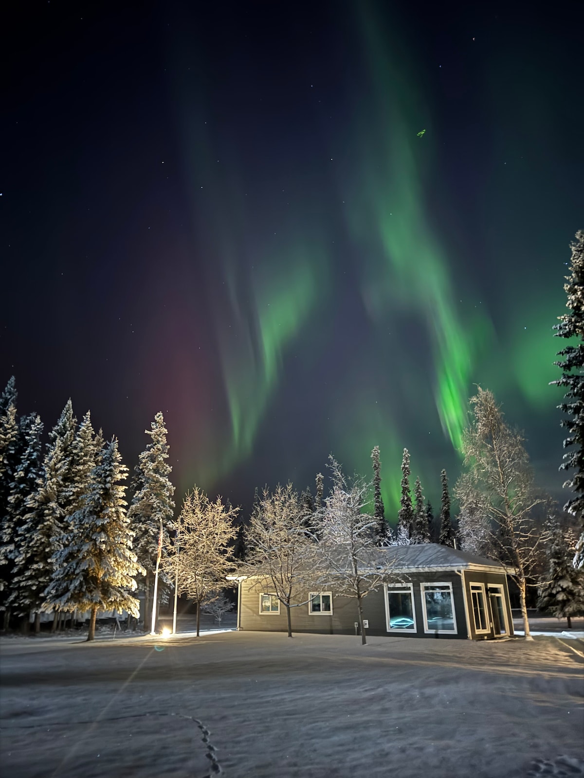 我花了兩年多的時間尋找該地區最好的Airbnb住宿,這是最好的地方!距離機場不到20分鐘。您位於一個安靜、寧靜的地方,周圍有超過40英畝的樹木和野生動物。房源位於Murphy Dome ,這是觀賞燈光的最佳位置,您可以輕鬆地從這個舒適的度假屋中觀賞燈光。狩獵、釣魚、徒步旅行...步行即可抵達!如有需要,我的汽車也可供租用。