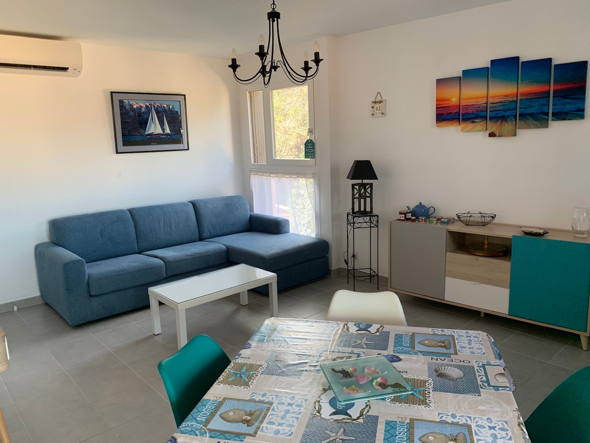 海景單間公寓,位於五樓,有電梯。殘障人士通道。距離商店和海灘 50 公尺。廚房配有迷你冰箱、電磁爐、微波爐、過濾式咖啡機和 Senséo 咖啡機。沙發床(145 x 195)、電視、冷暖空調、WiFi。帶烤架的封閉式陽台。2 張雙層床。附近有自助洗衣店和便利商店。7月1日至8月31日期間,可免費使用500公尺外的地下停車場。床單和毛巾可應要求提供(每人10歐元)。4 月底至 10 月初開放泳池(根據省長命令縮短營業時間)