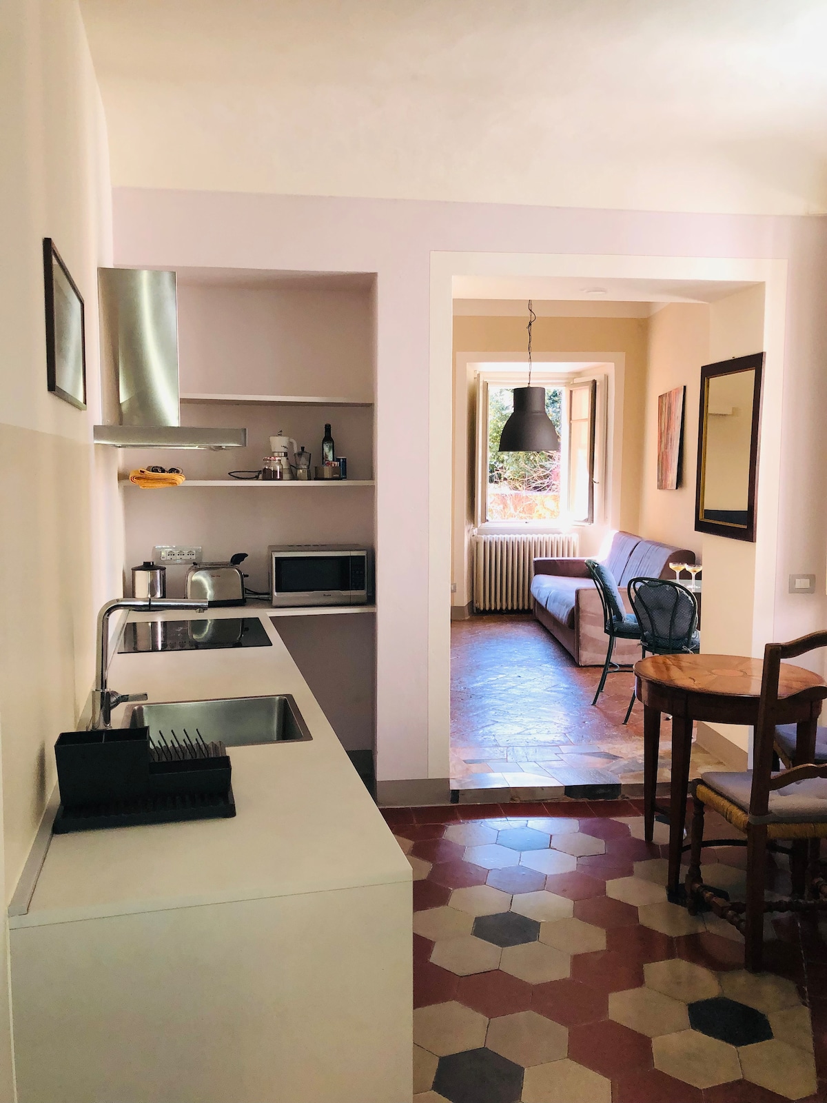 90 平方公尺的公寓配有私人入口、私人車庫、廚房、寬敞的客廳、浴室、雙人臥室和配有 1/2 人沙發床(140x200)的小臥室、空調(按使用量計費),朝南,有長長的全景陽臺和門廊,位於一棟住宅的二樓,花園面積 2000 平方公尺,種有樹木、灌木和花卉。我們會在房客抵達前一週提供義大利語/英語/德語的當地指南。 CIN012092C2BKMDK55Y