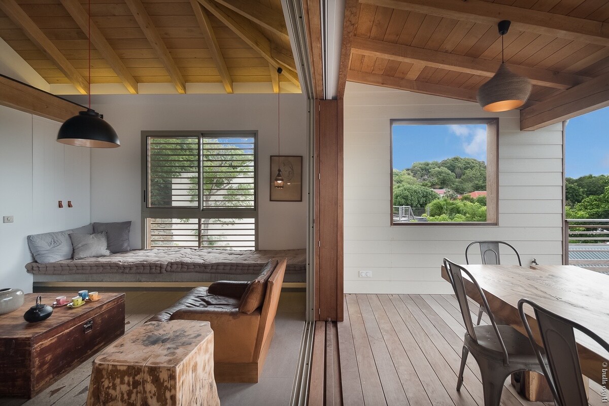 JaTho是一間現代化的複式房源,步行3分鐘即可抵達Flamands和Colombier海灘。 一樓有一間主臥室,配有浴室、露臺和小花園。 樓上的第二間臥室配有一張1.8米寬雙人牀或2張單人牀,配有浴室和更衣室。 廚房休息室可俯瞰配有餐桌和plancha區域的露臺,非常適合露天用餐。 JaTho非常適合與親朋好友以合理的預算享受聖巴特。