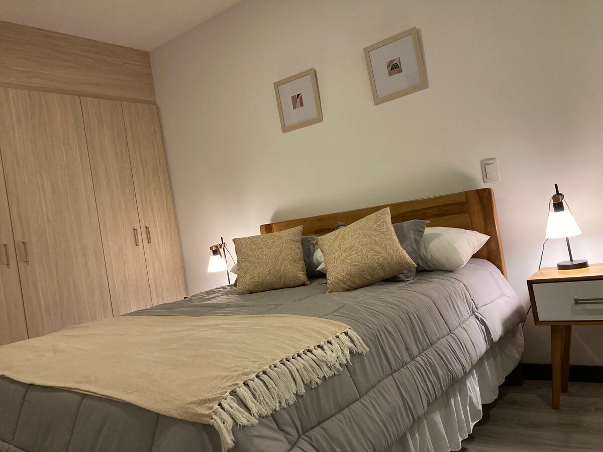 非常舒適、明亮、設備齊全、現代化且位置極佳。位於基多北部中心,歷史中心和La Mariscal幾分鐘。 FLACSO對角線,距離La Carolina Park和El Jardín Mall 3個街區。靠近金融和娛樂區,因此您可以在附近找到飯店、銀行、餐廳、酒吧和其他地方,但街道上沒有特有的混亂。公共交通( Ecovía )和BiciQ距離套房幾米。我很高興並準備好接待您。