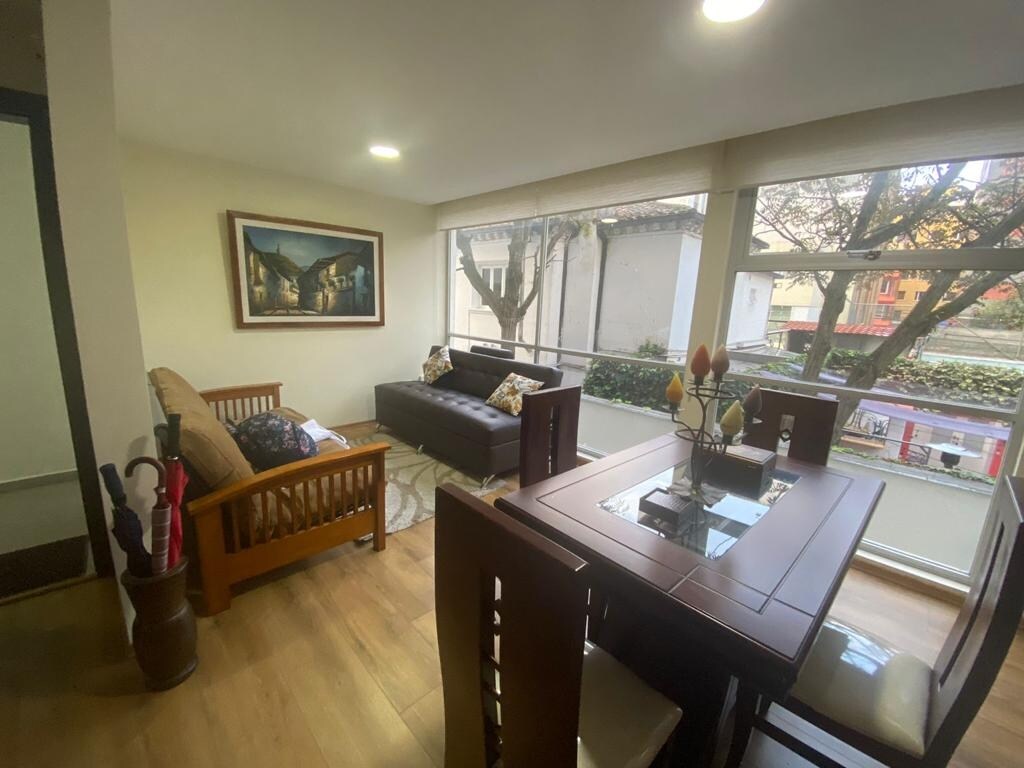 El departamento tiene Vista Espectacular, y Ubicacion Estrategica. DORMITORIO Cama Matrimonial escritorio Smart T.V. de 32" Closet BAÑO completo SALA COMEDOR 2 sofás grandes Mesa de comedor y 4 puestos COCINA Totalmente equipada CUARTO Lavadora/Secadora incluído TODO ESTA CERCA A PIE - Centro Historico - Casa de la Cultura - Universidades - Bancos - Supermercados - Farmacias - Parques - Transporte - Restaurantes - Guardias Seguridad 24/7 - Café, té,azúcar,sal,aceite, pimienta