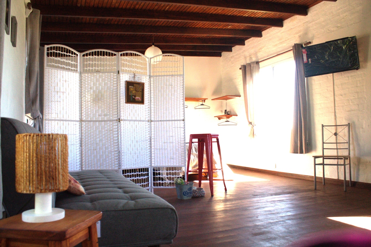 Disfruta de la sencillez de este alojamiento tranquilo y céntrico. Cuenta con dormitorio con cama de dos plazas y placard. Además un sofá cama de plaza y media. Cuanta con baño completo y cocina con anafe y utensilios. Espacio de trabajo algo separado para más tranquilidad. Hay parking público en las inmediaciones. Cuenta con patio al fondo. Barrio tranquilo cerca del centro y de la rambla.