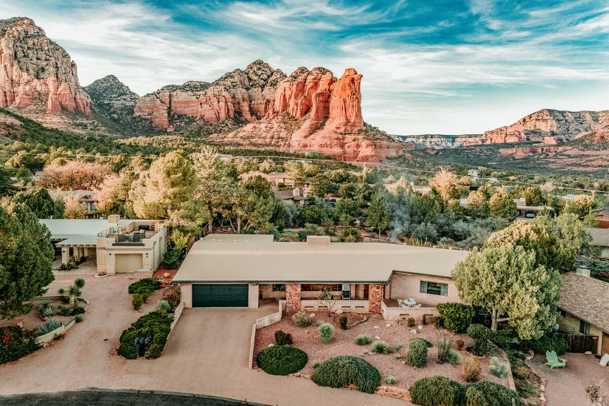 歡迎來到西塞多納的 Halona House!享受紅岩山景、迷人的泳池和全新的按摩浴池。這間寬敞的中世紀現代房屋由當地建築師設計,配有復古家具和3間超大房間。多個房間配有滑動玻璃門,享受無縫的室內外生活。步行即可抵達步道、頂級餐廳和商店,所有這些都在一個安靜的環境中。被AFAR Travel Magazine評為2022年最佳塞多納Airbnb之一!