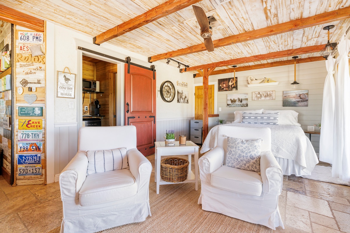 在安靜的社區,靠近購物和步道,在私人、獨立、安靜的客房套房中放鬆身心,房源內有小廚房和套房浴室。 私人露臺入口,有三個私人舒適的戶外座位空間,其中一個有火坑--非常適合晨間咖啡和夜間觀星! 位於西塞多納的理想位置,靠近步道、餐廳、水療中心、咖啡店、和平佛塔、雜貨店、穿梭巴士站! 由於過敏,我們無法接待輔助動物。