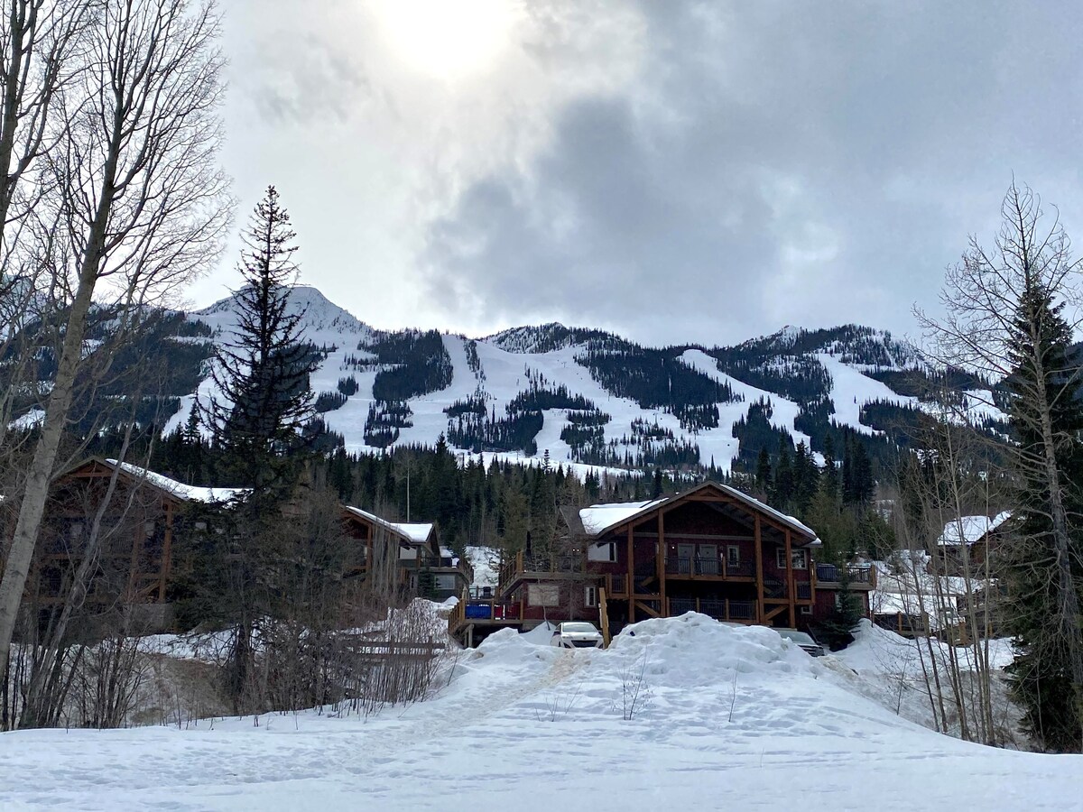 在路盡頭的舒適公寓享受安靜和私人的度假。非常適合情侶和家庭入住。這套滑雪入住和滑雪出走套房位於Kicking Horse Mountain Resort,非常適合那些想要登山的人。在一天結束時,在後甲板上享受私人熱水浴缸,欣賞森林景觀。此套房提供全套廚房、洗衣機/烘乾機、主床的雙人床、臥室2的單人雙層床、沙發床和加熱車庫的一個停車位。