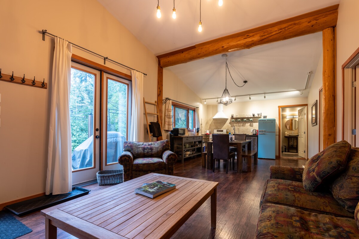 歡迎來到Drift Away ! 我們邀請您來到我們位於森林中的房源,距離不列顛哥倫比亞省黃金僅10分鐘路程,您可以在山脈、野生動物和寧靜中度過美好時光。 享受設備齊全的套房,配備所有設施,讓您舒適地住在樹林中,包括全套廚房、棋盤遊戲、舒適的沙發和優質床墊,配有蓬鬆的羽絨被。 靠近偏遠地區、多個國家公園和滑雪度假村,您的探險從您抵達的那一刻開始!