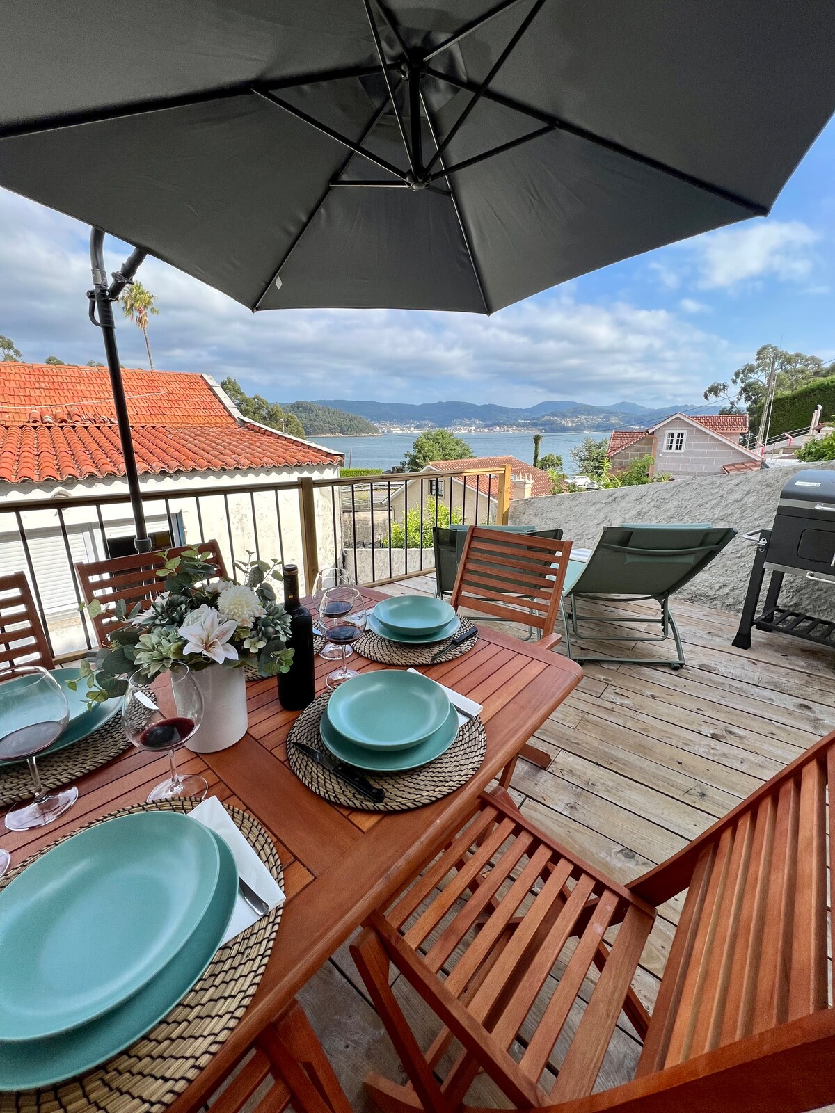 位於前線的小型海濱房屋,可欣賞Ria de Pontevedra的獨家景觀。非常安靜的區域,我們幾乎聽不到外出船隻的聲音,在那裡安靜和大海將使您的住宿成為獨特的體驗。房子外面有3個花園區域,我們可以在那裡找到遊泳池和燒烤區域,可欣賞令人難以置信的景觀。裡面有一間主臥室,頂部可以看到大海。