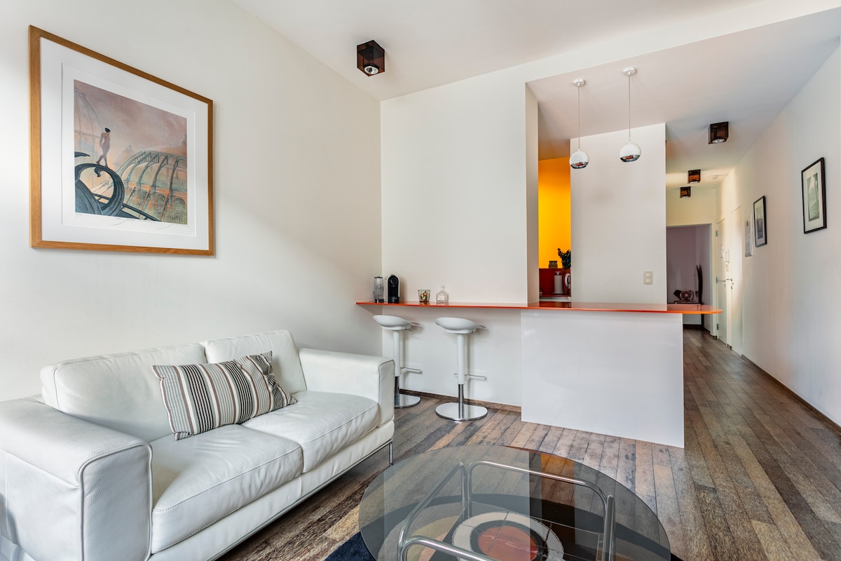 在這個性化、安靜、時尚、迷人、設備齊全的複式公寓中放鬆身心,配有設計師家具和裝飾,坐落在布魯塞爾歐洲區的中心。 這個安靜、舒適、現代而非常迷人的氛圍提供了家一般的舒適,使其成為您下一次商務或休閒旅行的理想目的地。