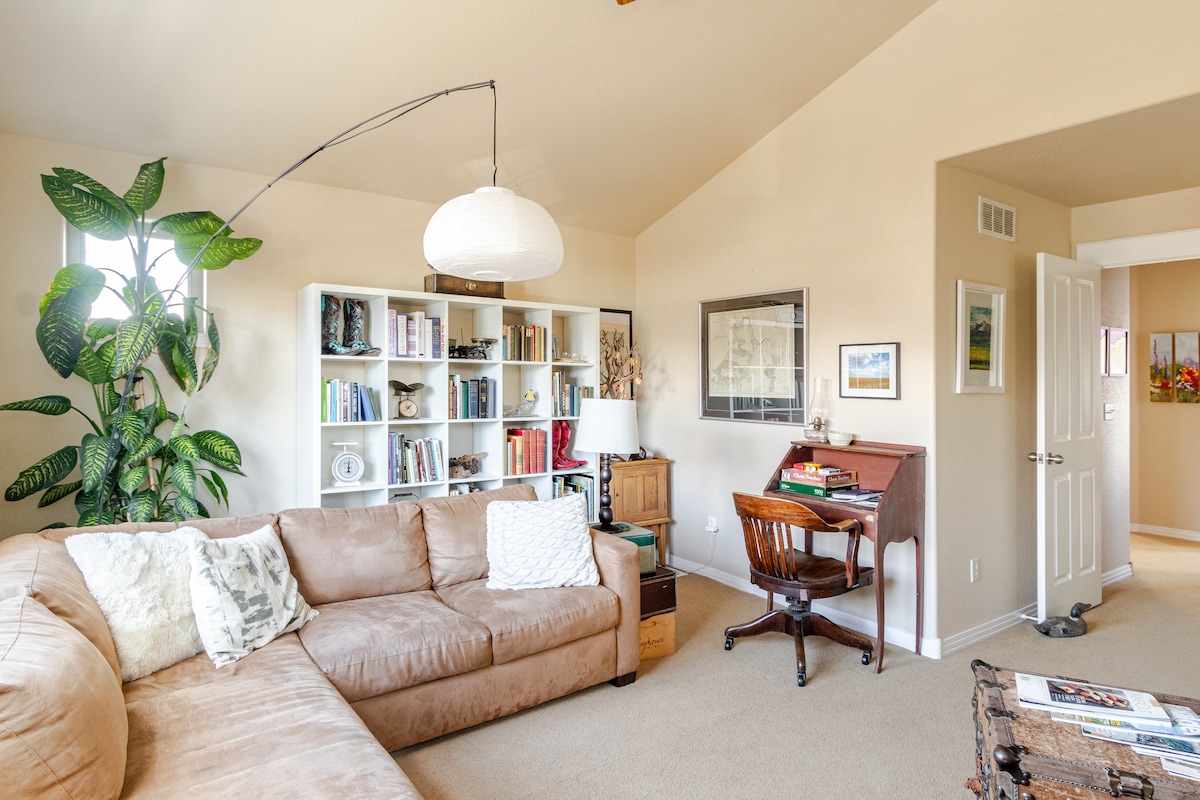 我的新裝修房源提供明亮的陽光房,可與飯店風格的標準雙人床拉出式沙發一起社交,以及舒適的地下室標準雙人套房供您休息。位於丹佛西北部,毗鄰I-70 ,可輕鬆前往市中心(開車5分鐘)、洛磯山脈的滑雪勝地和博爾德。這個房子相信節約能源和資源,包括前院的乾燥景觀和堆肥。它友善並接受所有人,尤其是邊緣化社區。