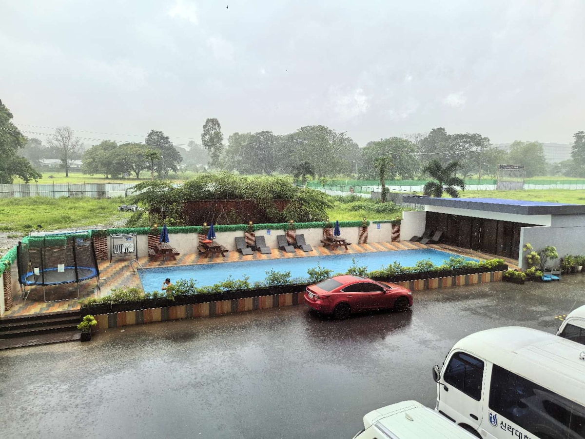Escape to ultimate relaxation at our private pool villa! Dive into luxury with a refreshing swim or unwind with your favorite Netflix series. For the gamers, Xbox awaits! And when the mood strikes, unleash your inner rockstar with our karaoke. Plan your staycation with family and friends! ✅ Grab Food reachable ✅️5mins drive to Mall/ NLEX exit /Landers ✅️3mins drive to 711 ✅️Nearby restaurants ✅️10mins drive to SM Clark / Clark Global City ✅️20 mins drive to Aqua Planet / Dinosaur Island Pet friendly