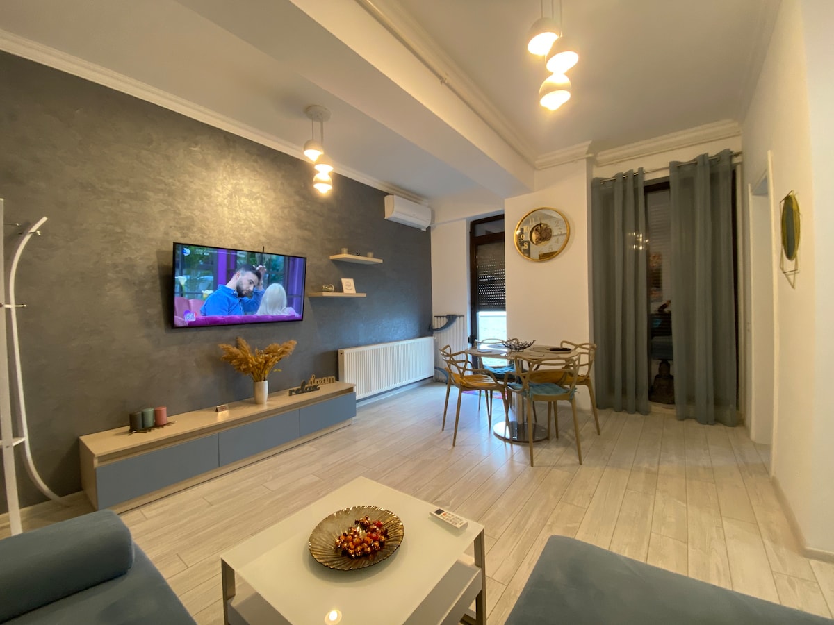 The apartment is spacious and bright (70 sqm), equipped with 2 balconies. Its position makes it special, as it is located in the central area of the city of Constanța, the journeys to Piata Ovidiu and Faleza Casino being very short both by car and on foot. Our apartment hides a little mystery🔑 Follow a trail of clues, solve a light puzzle, and open the old jewelry box holding a surprise. A playful treasure hunt that makes your stay more memorable — loved by both couples and families.