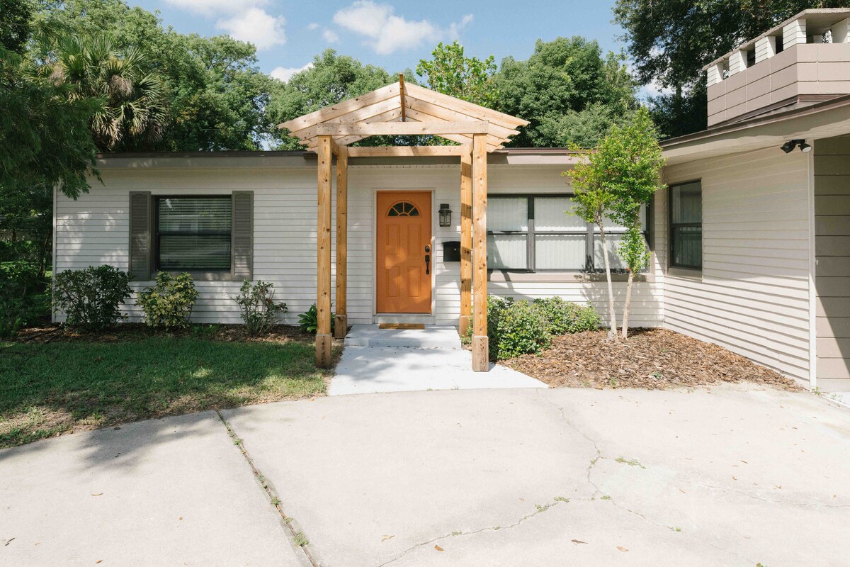 全面翻新的1950年代單間公寓(2024年),位於安全、安靜的奧蘭多社區! 享受豪華的雙人床、步入式淋浴間、Roku電視和配有Keurig的全套廚房。 包括私人車道、獨立入口和舒適的起居空間,配有時尚現代裝飾。 室內洗衣機和烘乾機,方便你使用。 距離市中心僅3英里,距離環球影城10英里,距離機場8英里,距離迪士尼18英里—非常適合尋求舒適、隱私和現代風格的情侶或獨自旅客。