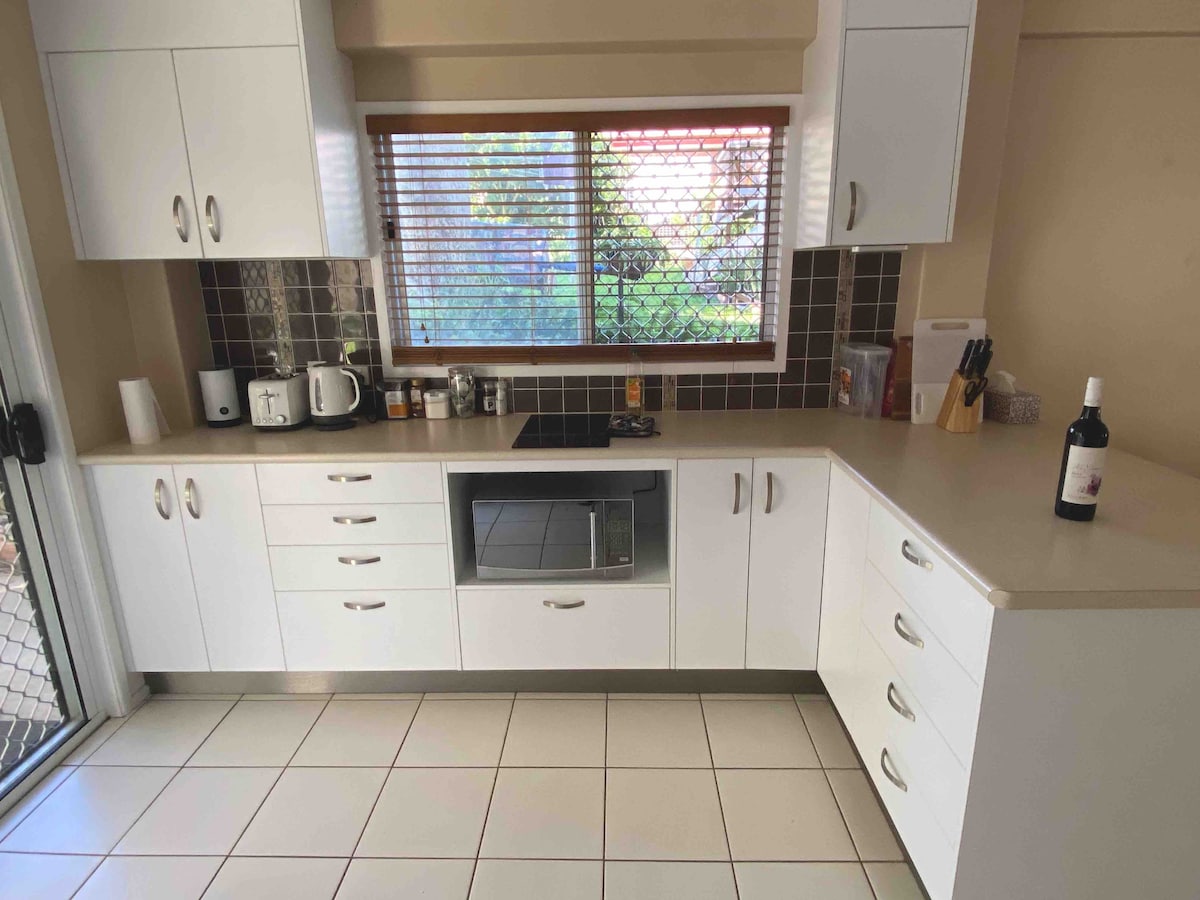 現代化的空調單間公寓,配有雙人床和額外的雙人床墊沙發床,可根據要求提供。 步行即可抵達美麗的當地海灘、免費泻湖泳池和步行15分鐘即可抵達很棒的餐廳,以及Cooee灣的可愛咖啡店+魚和薯條。 街外有遮蔽的停車位、智慧電視、WiFi、獨立浴室和配有新電器的獨立小廚房。可使用洗衣房和後花園,並可烤肉。 寵物和兒童友善。大型高架前甲板。
