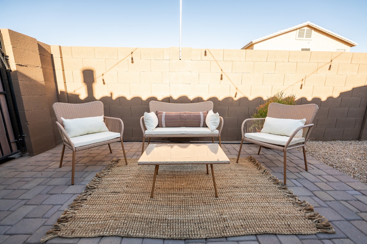 入住這間位於聖坦谷(San Tan Valley)的寬敞 3 臥 2 衛房源,讓自己有賓至如歸的感覺。開放式概念空間充滿光線,配有大型廚房和客廳,最多可容納6人。密碼鎖入口方便您輕鬆入住。 位於大鳳凰城/梅薩市區的東南部,可快速前往徒步旅行、高爾夫球場、自行車...但仍足夠靠近您的餐飲和購物樂趣。欣賞亞利桑那州景觀的開放空間,同時也靠近市區景點