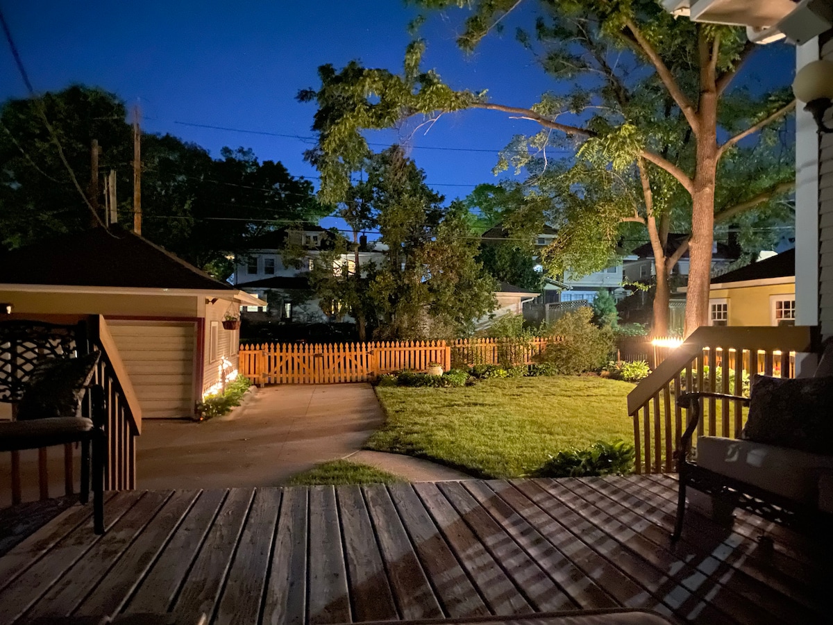This 1930’s storybook cottage is tucked away in the Longfellow Historic District, one of Iowa City’s most peaceful, beautiful neighborhoods. Close to downtown and the University, walkable to Deluxe Bakery, Longfellow Nature Trail, and multiple parks, this charming home has one queen bedroom plus an upstairs loft/workspace with an additional queen-sized bed. Updated kitchen and bathroom, electric fireplace, and eclectic art and books make this a unique getaway in the heart of Iowa City.