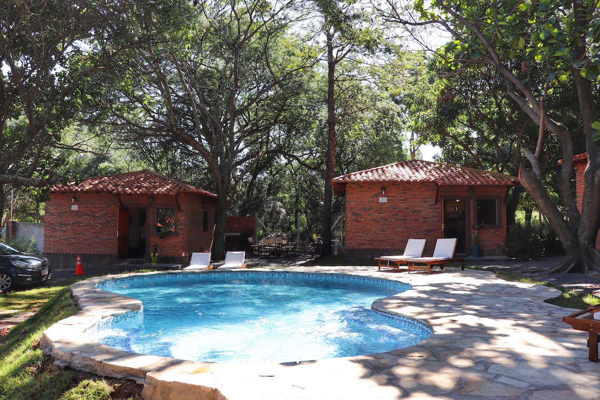Ven a vivir un tiempo de relax, con la familia! El chalet esta equipado con todo lo que necesitas para que tu estadia sea comoda y placentera. Vas a sentirte en casa, estando lejos de casa...Con la piscina, espacios verdes y un ambiente tranquilo y seguro para ti y tu familia...!