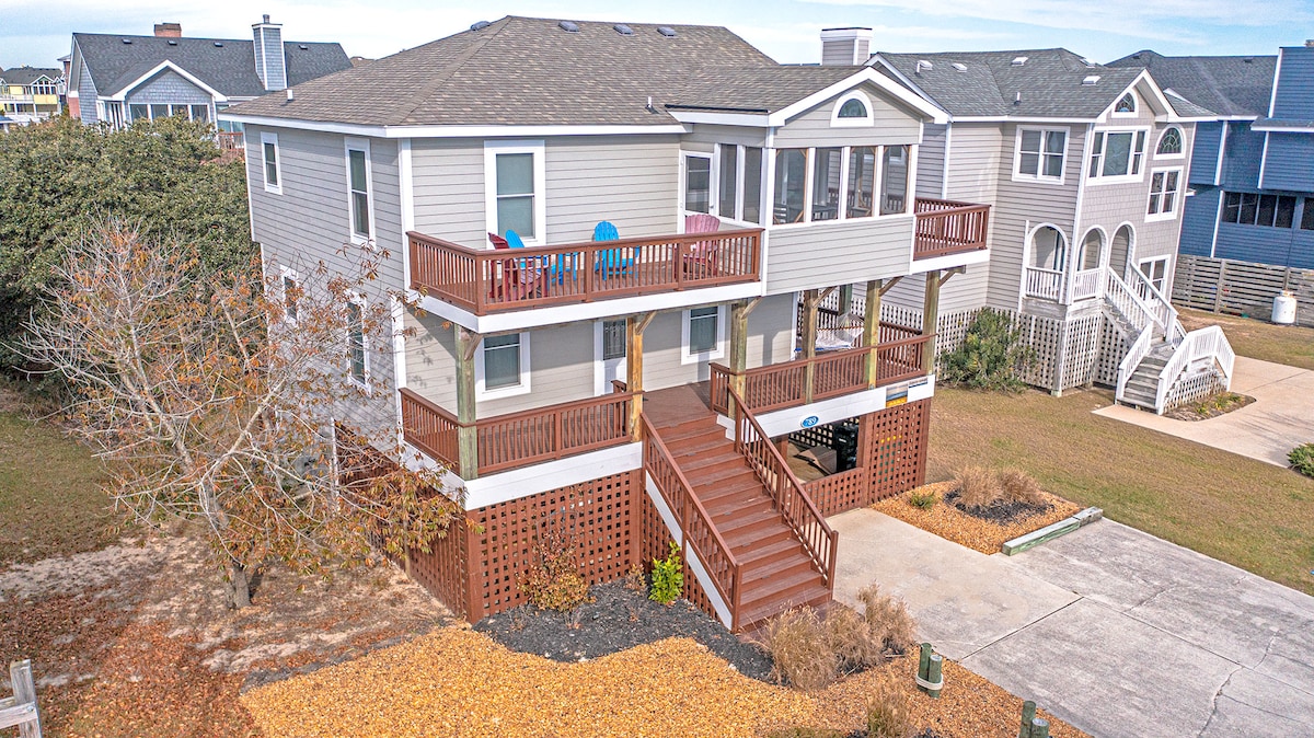由OBX Sharp Stays專業出租:歡迎來到「海灘別墅」,這是一個經典的外灘小屋體驗。這座歷史悠久的小屋建於1946年,是家庭來實現海灘度假夢想的地方。距離海邊僅一排,可從客廳、露臺和樓上雙人床臥室欣賞海景。這個中心位置距離私人海灘50碼,步行即可抵達餐廳和商店,非常適合探索OBX的所有景點。