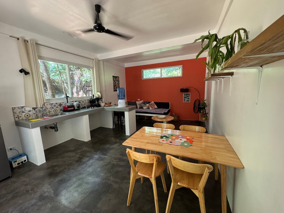 從科隆鎮(Coron Town)開車8分鐘即可抵達寬敞的叢林隱藏處。 房子四周環繞著樹木,保持自然涼爽和清新,是島嶼冒險一天後放鬆身心的寧靜之地。 舒適的廚房配備烹飪您最喜愛的餐點所需的一切,而配備空調的臥室配備舒適的加大雙人床,讓您安心入睡。 浴室通風良好,現代化,即使在偶爾的島嶼棕色化期間,我們的Wi-Fi也快速可靠。