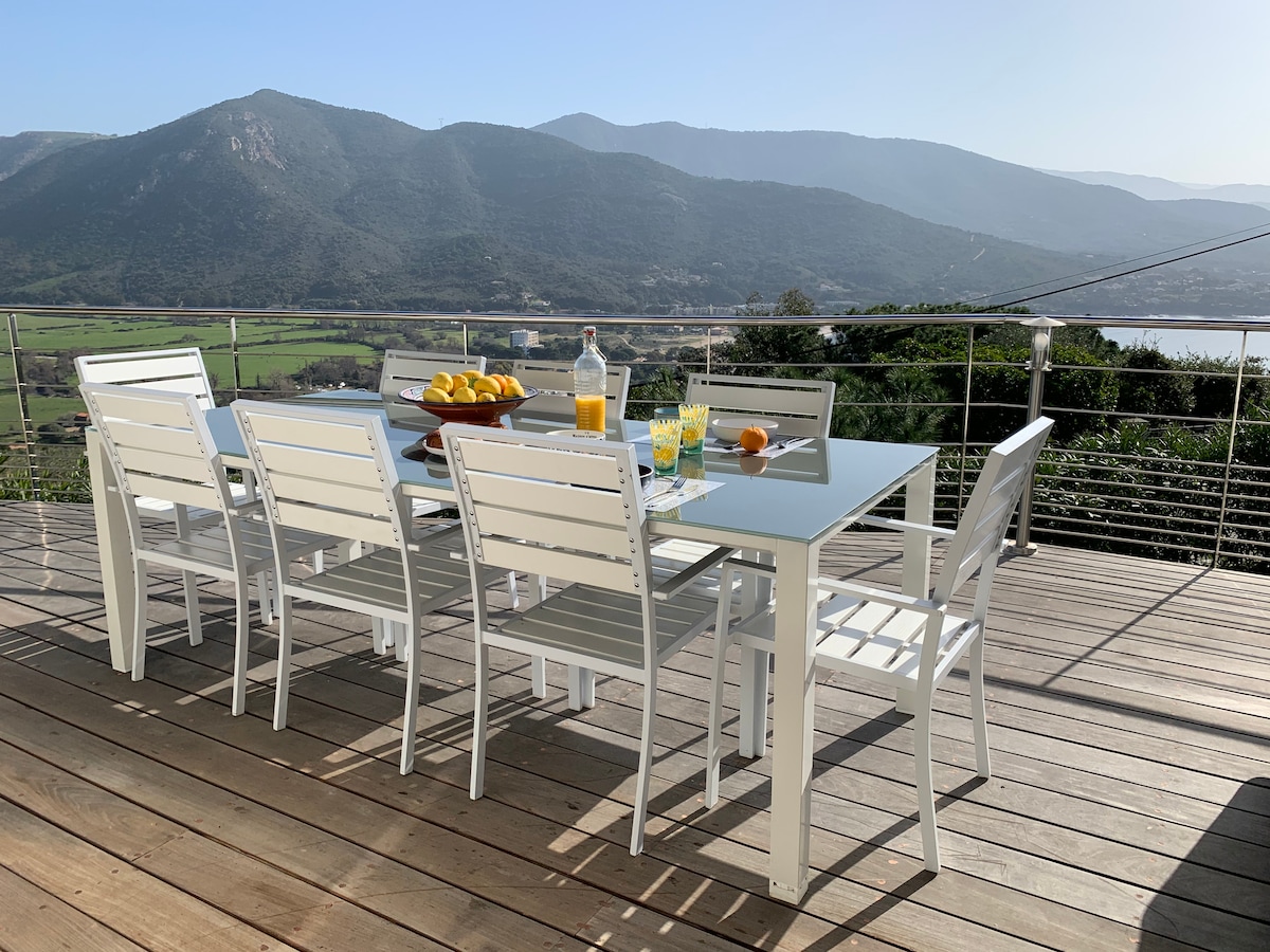 舒適與生態的結合。 極佳的景觀、海景和山脈。2間臥室、舒適的浴室、設備齊全的廚房。 大花園。遠離任何遊客喧囂,但就在阿雅克西奧的大門口。 附近有海灘,包括一個步行即可抵達的海灘! 最少入住7晚的禮物!