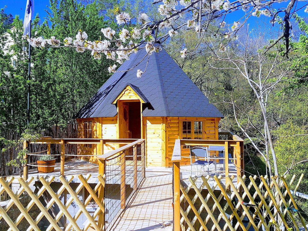Chalet atypique de forme octogonale avec accès par une passerelle,décor chaleureux et ambiance féerique garantie.Entièrement équipé avec tout le confort nécessaire.En annexe,un grill central permet de s'offrir un repas convivial.Pour une occasion ou tout simplement se reposer,ou se dépayser,vous trouverez ici au coeur du centre corse différentes activités.La situation géographique est idéale pour visiter la corse.Je vous propose de plus l'apero ♡ ou le panier grill pour agrémenter votre séjour.