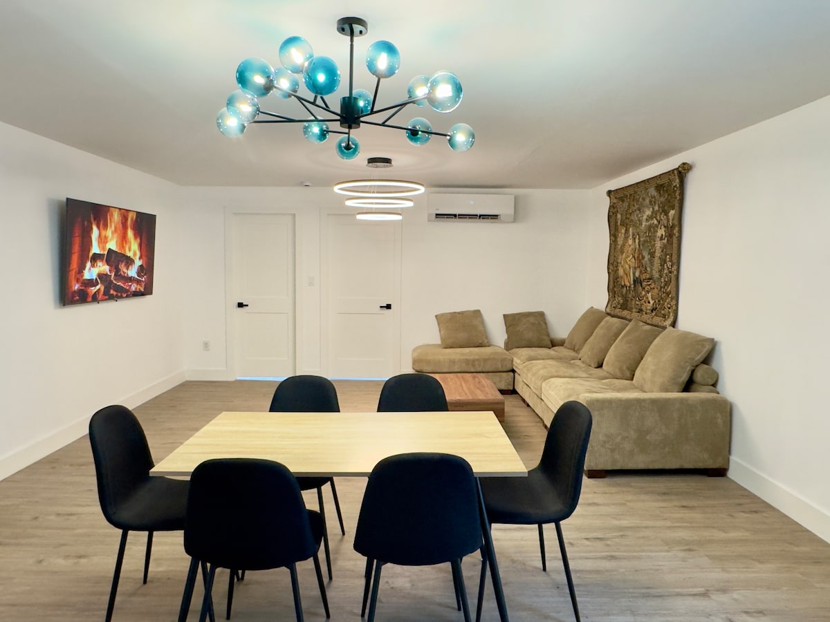 Stay in style and fun at this modern 2-bedroom apartment in Cincinnatus! Enjoy a private stay for up to 4 guests with full kitchen, cozy living room, and smart TV. Downstairs, relax at Bank Coffee, and have unlimited access to the indoor game zone—ping-pong, pool, air hockey, arcade, mini basketball, PS5 & more! Free parking, Wi-Fi, and self check-in with code. Family-friendly and unforgettable!