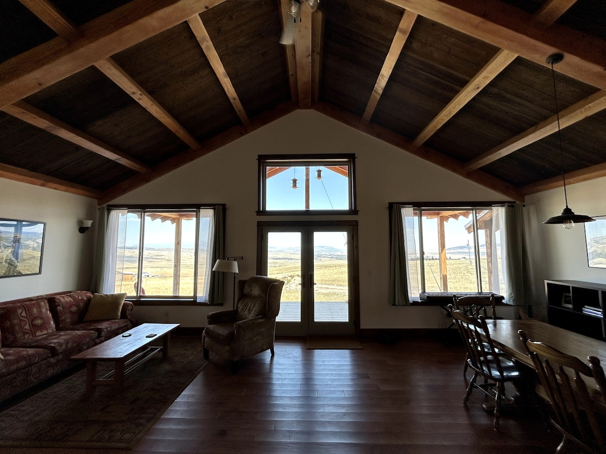 兩間臥室和浴室山間房屋,開放式樓層,可欣賞瘋狂山脈、Absarokas、Wineglass和Bangtails的美景。寬敞的露台,可在夜間俯瞰文明,距離利文斯頓(Livingston)小鎮僅10分鐘。這個房源位置極佳;靠近城鎮,但足夠高,可以在葡萄酒杯上享受山間隱居的寧靜,距離博兹曼(Bozeman)30分鐘,在前往天堂谷(Paradise Valley)和黃石公園(Yellowstone)的路上剛好離開89。