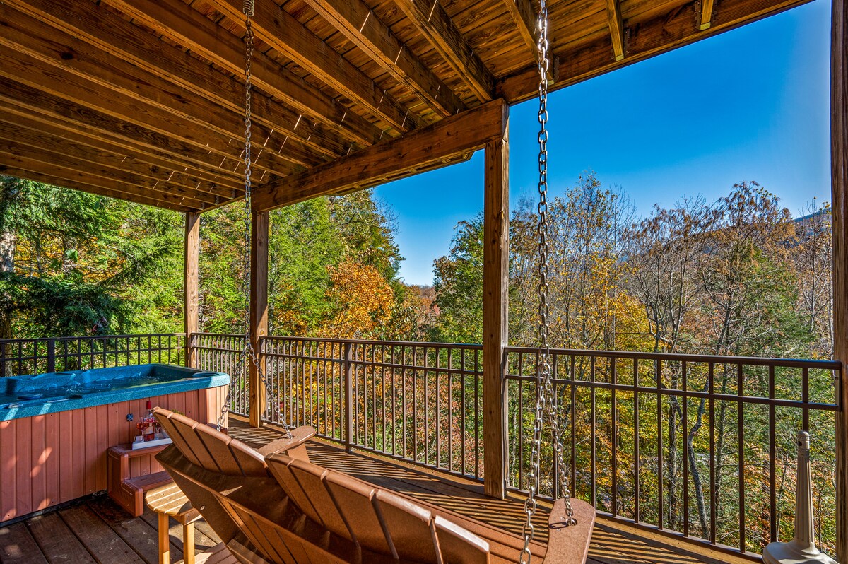 Luxview Lodge是一間現代豪華小屋,坐落在Cobbly Nob的Smoky Mountain度假村社區,可欣賞迷人的無遮擋景觀。 我們的小屋面積為2600平方英尺,有3間臥室、3.5間浴室、遊戲室、按摩浴缸、室內泳池(配有75英寸劇院螢幕和杜比全景聲音)和電動車充電! 看看你能不能用我們的大型望遠鏡找到熊!10分鐘即可抵達加特林堡! 有24小時度假村保全,您會感到安全。 我們位於山下,前往房源的道路很方便。