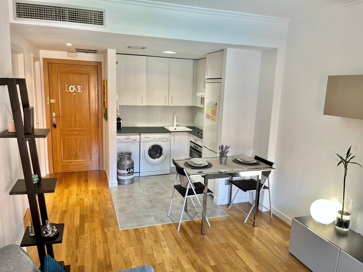 歡迎來到我們位於 Rejas 街區的舒適綠洲,距離馬德里巴拉哈斯機場 (Adolfo Suárez Madrid-Barajas) 和 IFEMA 會展中心僅幾分鐘路程,而且非常靠近 Plenilunio 購物中心和萬達都會體育場 (Wanda Metropolitano)。非常適合休息、工作或享受城市生活。公寓提供一間配有雙人床的臥室、配有小廚房的客廳、Wi-Fi、免費停車位和24小時保安。在馬德里住宿期間,您可以享受安靜舒適的完美位置。