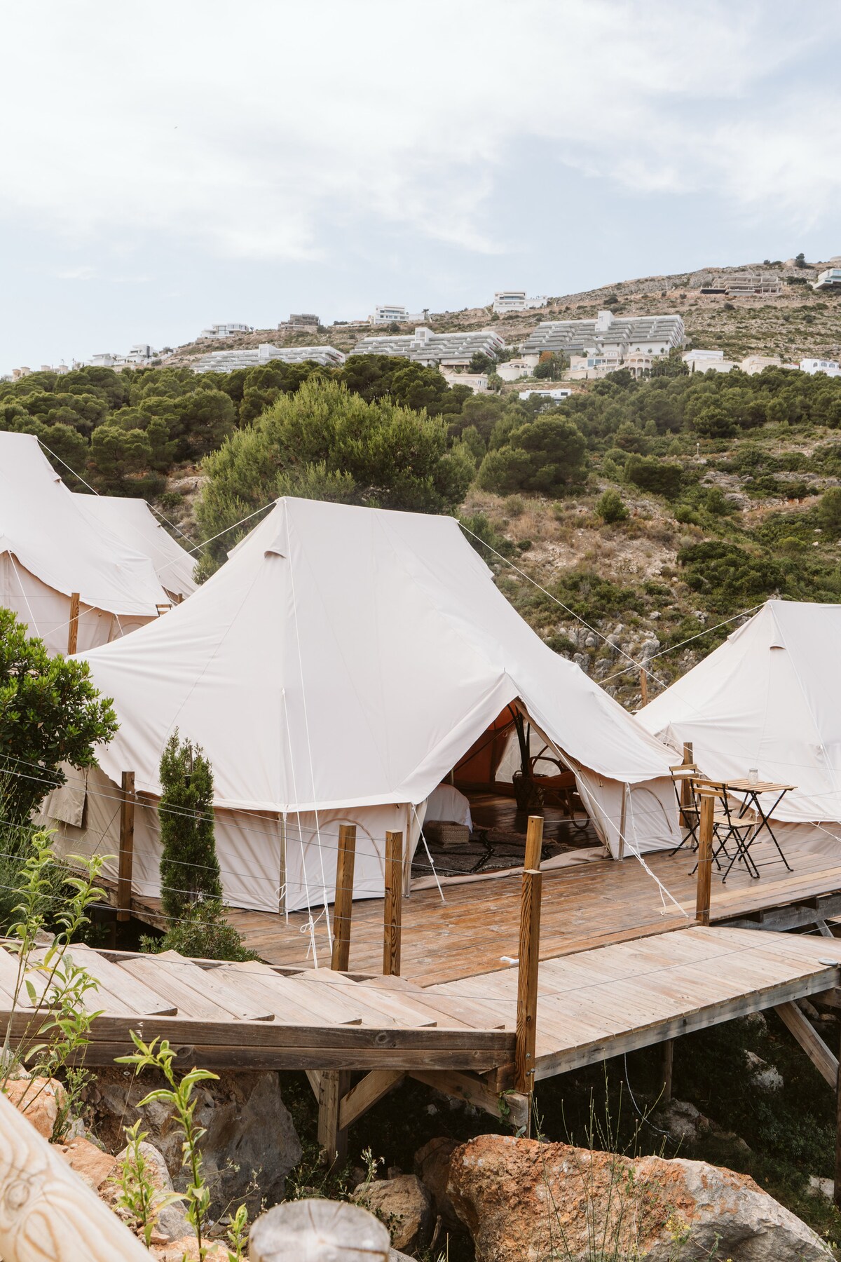 豪華露營帳篷位於營地內,提供其他帳篷、共用浴室設施、餐廳、泳池、休閒區域以及皮劃艇和立式槳板租賃。 營地坐落在懸崖上,俯瞰貝尼塔切爾( Benitachell )的卡拉莫雷格( Cala Moraig )的迷人海景,完美融合了冒險和放鬆。