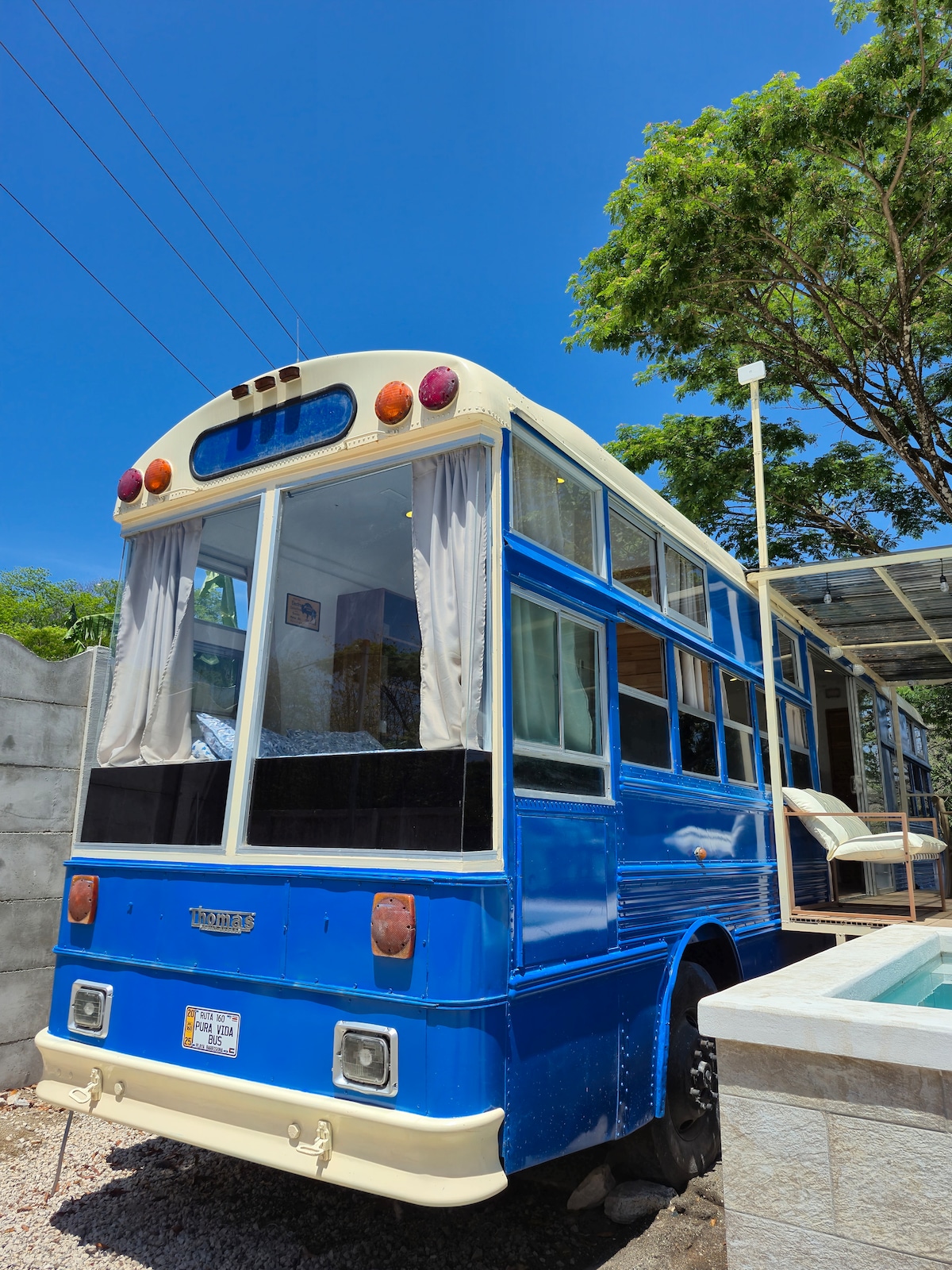 Welcome to Casa Mila at Hotel Balu, a stylish skoolie in our secluded 2.5-acre property in Tierra Pacifica. Our stunning oasis boasts an artist-built yoga shala, outdoor dining area, ice bath, spacious fire pit, and a 2-tier pool inspired by Costa Rica's hot springs. Nestled within a luxurious gated community, we're just 0.8 miles from Playa Junquillal & Playa Blanca, two of our area's most private and pristine beaches. Enjoy endless amenities while being immersed in a natural paradise.