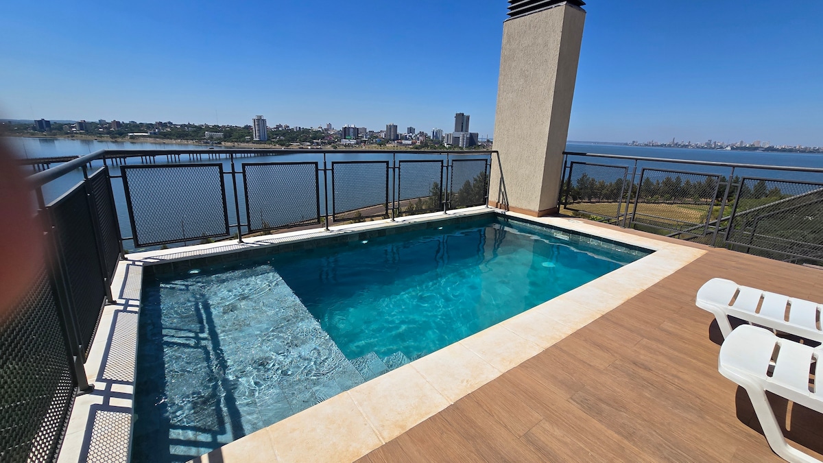 我在Costanera de Posadas發現了一間現代化和明亮的公寓,可欣賞城市的優美景觀。 非常適合尋找高級體驗的人:極簡設計、寬敞的空間和專為您的舒適而設計的細節。 非常適合重視地理位置、風格和舒適度的情侶或旅客,距離市區和巴拉圭恩卡納西翁橋僅幾步之遙。 5分鐘即可抵達市中心、超市、酒吧和餐廳。 露台泳池