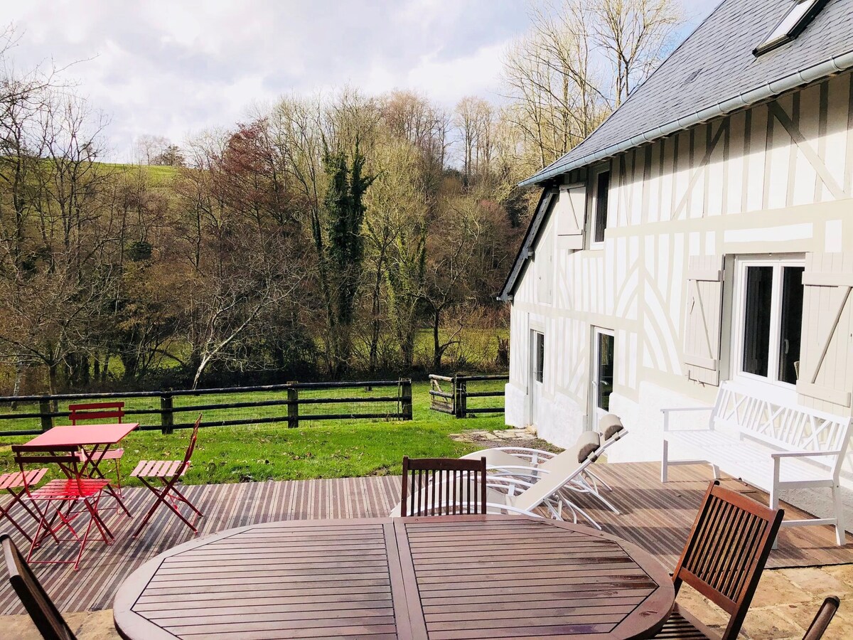 非典型且充滿魅力,這是一棟小型半木屋和裸露的橫樑,前Charretterie du Manoir de la Porte ,經過精心修復。2間臥室有5張牀。(包括夾層請參閱照片)。 北歐爐。 🌳🦔在4公頃的綠地上,有許多動物,為孩子們帶來歡樂 🐣🦉🐏🐴🐱 網球、蹦牀 距離Deauville/Trouville和Honfleur 15英尺。 Pont l 'évêque 5'的Sncf站。 鄉間真正的魅力,為您的孩子夢想自由!
