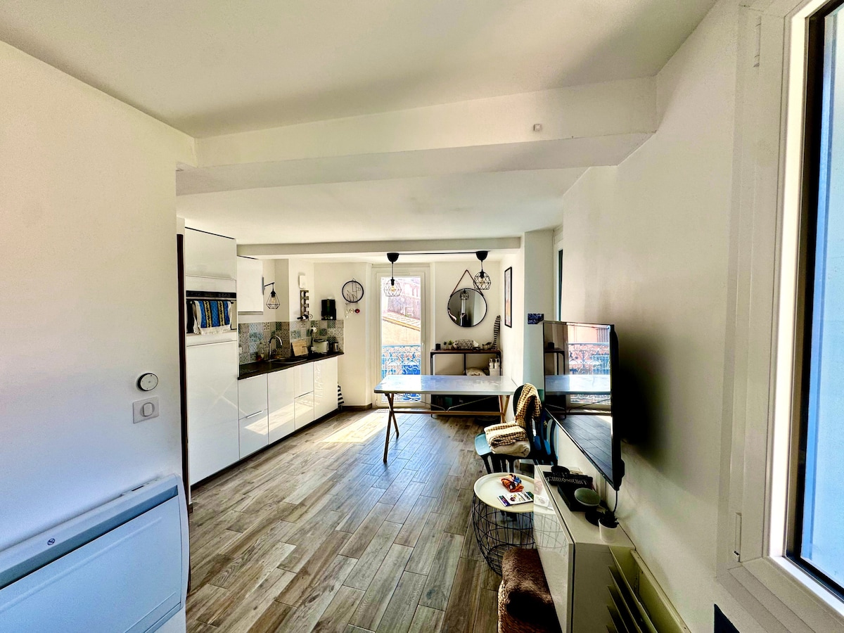 我們的公寓(T1)是一棟三層樓房屋的一部分,擁有獨立入口,步行 5 分鐘即可抵達科利烏爾 (Collioure) 的中心和火車站,步行 10 分鐘即可抵達海灘。 窗戶朝南/西,俯瞰阿爾貝雷山脈。 我們出租房屋已經超過 20 年,很高興能接待遊客。二樓也有一套相似的公寓,條件相同。