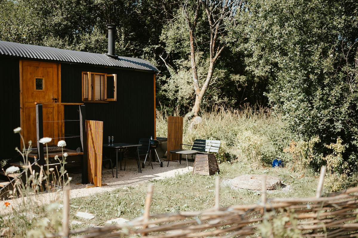 Stay in Chiyo-ni, our Japanese-inspired shepherd’s hut for two with a Hikki Bohemen hot tub (wood for one soak included). Dip in our magical spring-fed ponds on private land, explore waterfalls & a hidden grotto, then return to off-grid comfort: hot shower, Wi-Fi, French linen, wool duvets & a wood burner (starter logs/kindling/firelighters included). Optional outdoor spa with two saunas at a reduced guest rate. Horse Lorry Library + great pub nearby.