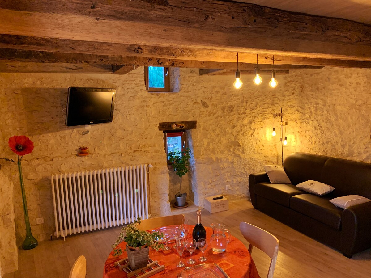 在鄉村中,在一個舊農舍內的翻新住所中放鬆身心。配有廚房、餐廳、客廳、一間配有160×200大床的臥室、一間配有淋浴間的浴室、一個小花園,等待您在戶外用餐。距離佩里格市中心僅 15 分鐘。 來參觀這個美麗的地區,您將距離布蘭托姆 (Brantôme) 和薩爾拉 (Sarlat) 30 分鐘路程,以及許多其他美麗的角落,如著名的拉斯科洞穴 (Lascaux) ,