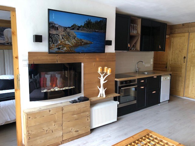 Nouveau ! Appartement tout confort, comprenant 1 chambre avec 1 lit double de 180, modulable en 2 lits de 90cm. Cuisine équipée, canapé convertible 2 couchages, salle de bains avec grande douche à l'italienne et toilettes séparée. À 5min de toutes commodités (commerces, remontées mécaniques, navettes gratuites, nombreux restaurants, dont 1 étoilé "azimut"). Parking de 2 voitures devant le logement. Vue dégagée et panoramique du massif montagneux (vanoise). Retour skis à 50 m.
