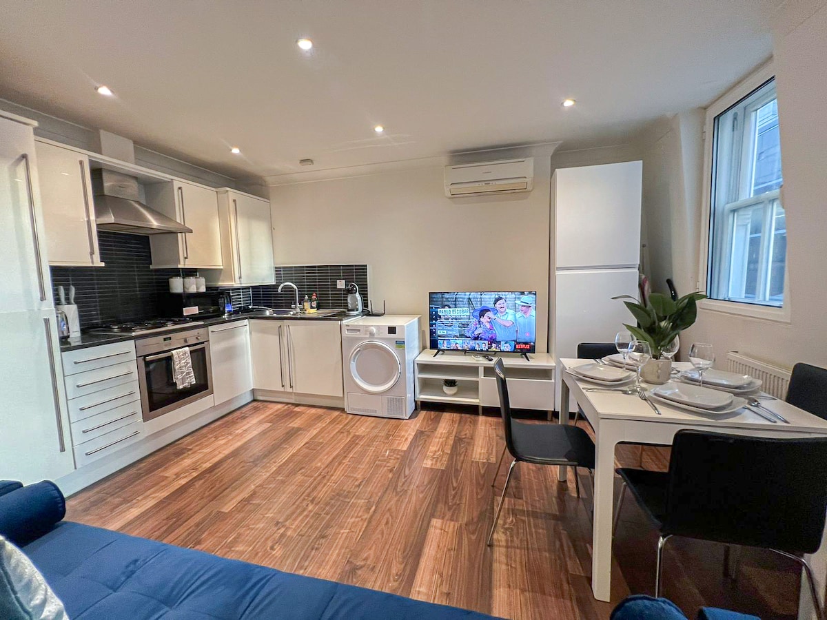 非常中心,地下室公寓( 45平方米) ,可容納3人。 不適合2歲的嬰兒和兒童計算為一人。 獨立入口、1間臥室、1間客廳、1間浴室。 靠近牛津街、攝政街和邦德街購物區、SOHO酒吧和餐廳區域、博物館和劇院。 我們擁有英國最快的光纖,非常適合串流/雲端儲存。 您可以在指定的辦公區域使用無線網路或有線連線在家工作。