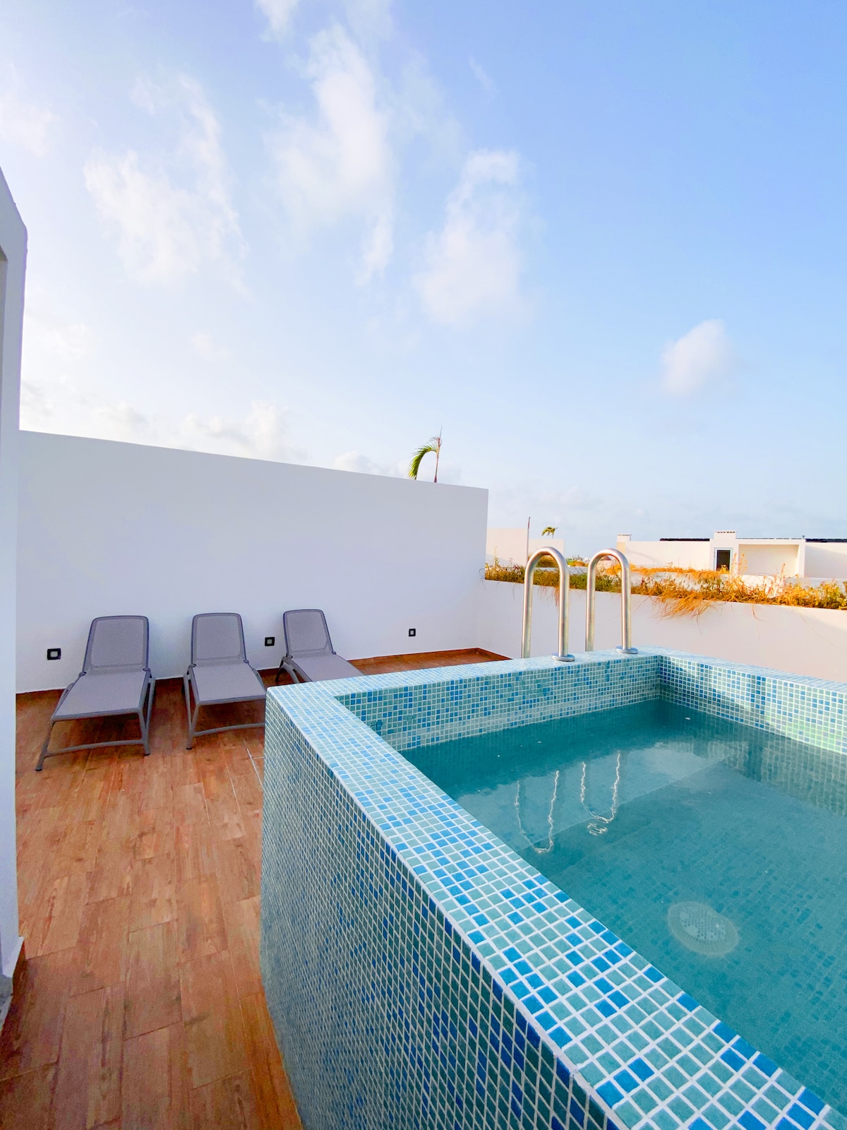 Modern, adults-only apartment in a quiet neighborhood just minutes from downtown. Guests love the peaceful setting and return often for the rooftop plunge pool, BBQ area, and daily housekeeping. Cruise the coast on free bikes or explore nearby shops and cafes. ✔ Rooftop Pool ✔ Starlink WiFi ✔ Free Bikes ✔ Full Kitchen ✔ Night Security ➕ 7-Eleven only one block away Bonus: 10% off scuba diving with top-rated Scuba Life Cozumel. Ages 12+ only.