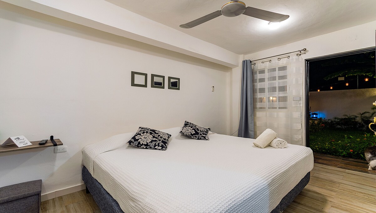 Full-equipped studio within a small, private complex of 8 studios, all of them designed to make you feel at home. Located in Playa del Carmen’s downtown, only 6 blocks away from the famous “5th Avenida” and 7 blocks from beautiful Caribbean beaches. Plus: a big supermarket one block away, banks, pharmacies, restaurants of local food all around. We have free parking subject to availability. Welcome!