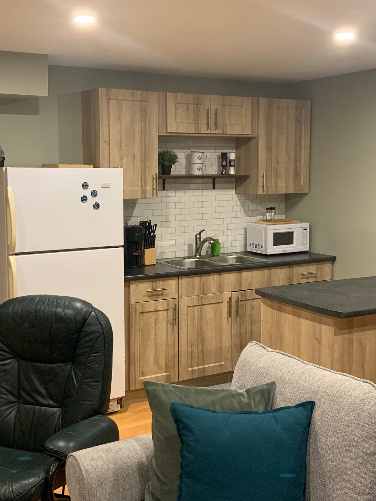 在這個時尚、寧靜的空間放鬆身心。 套房距離市區開車15分鐘,有1間臥室、1間浴室,建於2023年。 臥室在標準雙人牀上方有一張閣樓牀。 3.7英畝的房源後面是無盡的綠地和步道。 套房包含400平方英尺的上層甲板,可欣賞美麗的山景,非常適合觀賞北極光。 露臺有露臺家具和丙烷壁爐。 出租套房旁邊是屋主居住的木屋。