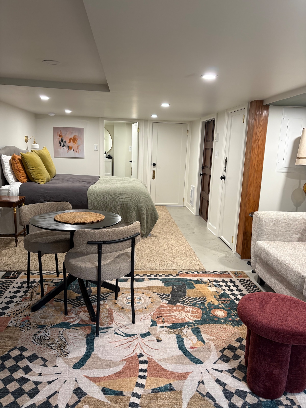 Kick back and relax in this calm, stylish space. Treat yourself to luxury. Espresso machine, fine linens, heated bathroom floor, bidet, premium-local shower products and conveniently stocked kitchenette and breakfast items. **Ceiling height is 6’ ** (6’2” in the kitchen) This is a self contained suite with keypad entry. There is a combo washer & dryer unit in the suite. We also rent our car on Turo! Come enjoy a beauty peaceful vibe, tucked into nature, convenient & close to the action!